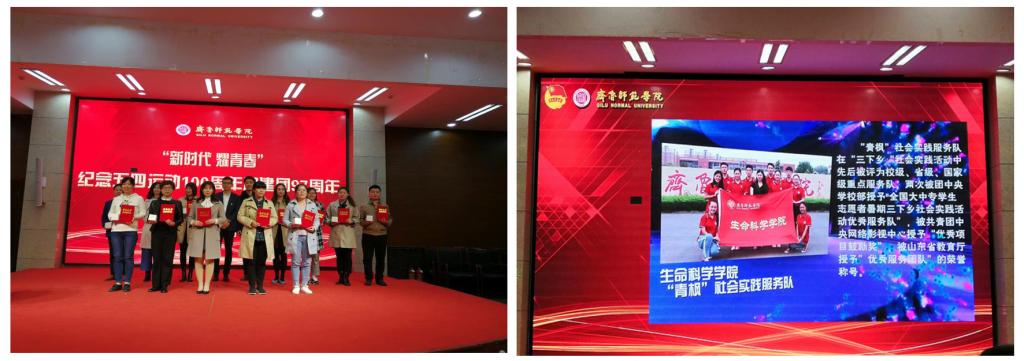 “新時代,耀青春”。為深入貫徹習近平新時代中國特色社會主義思想,紀念五四運動100周年和團建70周年,表彰先進,弘揚五四精神,4月25日14:30,我校在圖書館學術報告廳隆重舉行紀念五四運動100周年和團建70周年暨2019年五四運動表彰大會,生命科學學院相關老師及學生代表參與表彰大會。