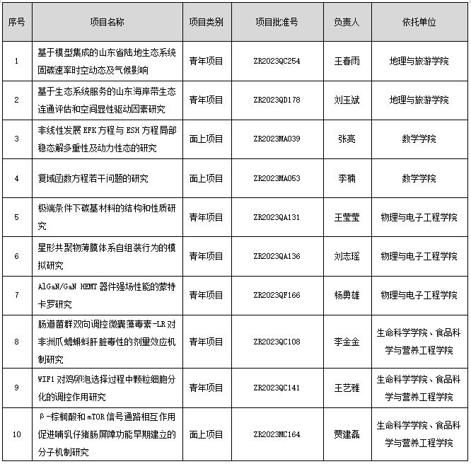 附:齊魯師范學院2023年度山東省自然科學基金立項項目一覽表