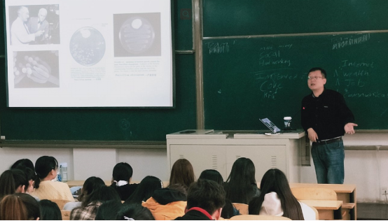 胡瑋教授從事細菌形成生物被膜(Biofilms)過程中復雜細胞行為的分子機制的研究,在Nature Communications, Cell Biology, Microbiology, PloS One等高水平雜志發表多篇論文。本次報告中,胡瑋教授介紹了細菌生物被膜形成的原因、機制及相關感染性疾病的防治措施等。此外,胡教授還分享了自己在外求學的經歷及感悟,倡議同學們認真學習專業知識和技能,最后介紹了山大微生物技術研究院研招的相關政策,并解答了部分同學在研究生報考方面的疑問。