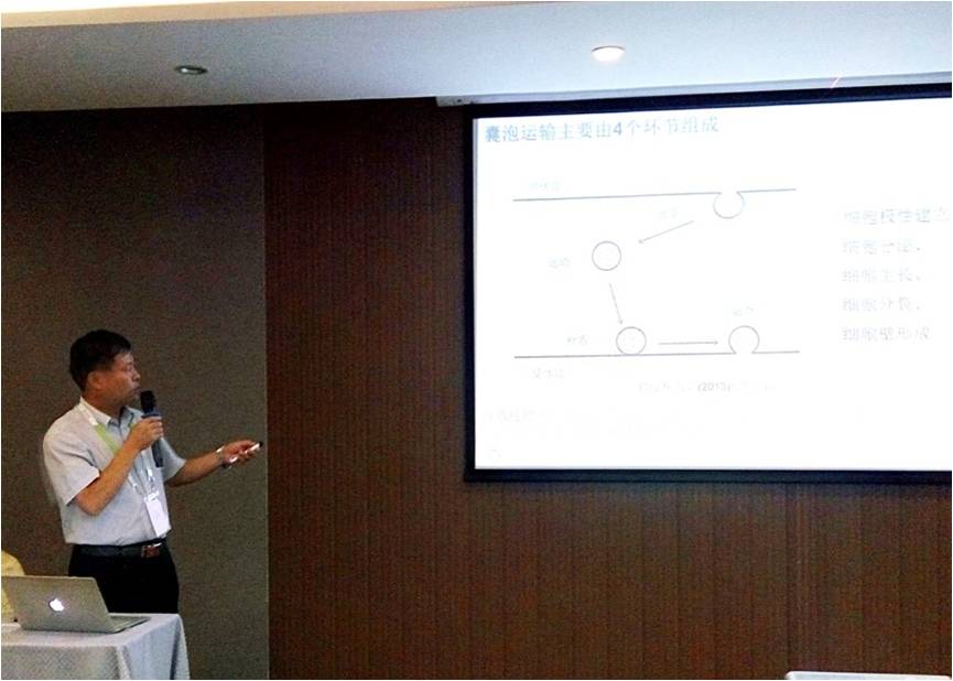 李師鵬教授的報告題目是“EXO70A1介導的囊泡運輸參與木質部次生壁物質的沉積”。李老師通過報告,介紹了課題組在該研究方向中取得的一些新的研究進展,引起了與會專家學者的濃厚興趣并得到同行們的高度評價。李師鵬教授多年來一直致力于植物EXO70家族基因的研究,取得多項研究成果,其中兩項成果發表于國際著名期刊Plant Cell(SCI一區)和Plant Physiology(SCI二區),得到國內外同行的認可。李老師領導的課題組2013年以來,成功獲得了一項國家自然基金面上項目、兩項山東省自然基金面上項目及一項山東省自然基金青年項目的立項。在課題組廣大師生的努力下,取得了一些重要的研究進展。