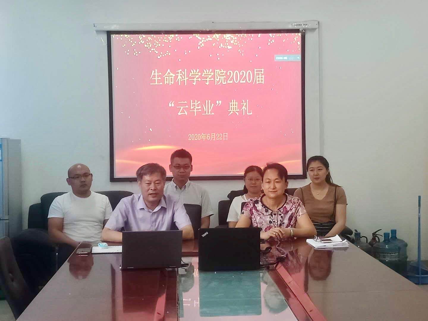 時光鳴笛,畢業季的旋律已經奏響。畢業典禮對每一位同學來說就像是一首校園時光的終曲,用莊重的儀式見證著學生時代的完結。雖然疫情讓畢業生無法相聚,但是生命科學學院的老師用這場特殊的典禮送別每位畢業生。2020年6月22日上午9點,學院通過網絡會議舉行了一場“云畢業”典禮。院長李師鵬、黨總支書記姜東菲、團總支副書記張宏熙、輔導員房繼德、祖群、班主任朱睿斌、石婷婷以及2020屆310名畢業生相聚“云”端,共同見證這特別的畢業時刻。