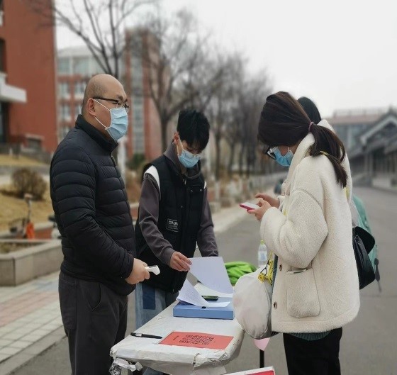 學(xué)院學(xué)生會(huì)成員自愿成立志愿者小組,幫助返校同學(xué)核驗(yàn)身份、測(cè)量體溫、完成注冊(cè)報(bào)道。在學(xué)校、學(xué)院領(lǐng)導(dǎo)的統(tǒng)一指導(dǎo)下,疫情防控預(yù)案和學(xué)生返校復(fù)學(xué)方案不斷完善,相關(guān)部門強(qiáng)化安全管理,做好物資準(zhǔn)備,合力把好校園疫情防控的第一關(guān)。