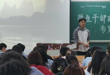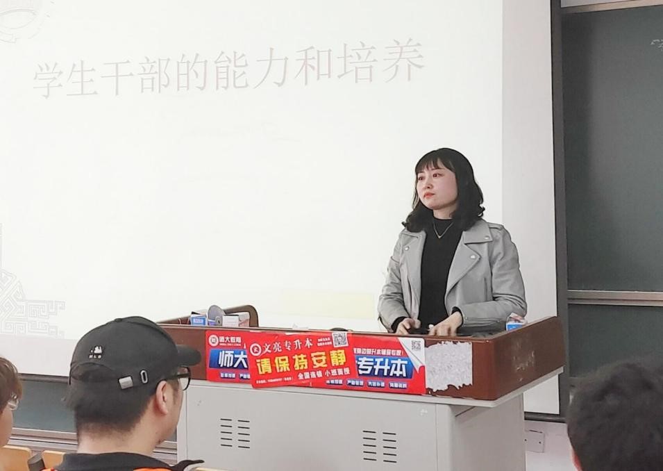 學生干部代表白雪、于潁穎、吳旭以深入淺出、循序漸進的方式進行經驗分享,全方位講解自己的學生干部經歷,他們分別從思想品德、學習成績和工作方法三個方面講授如何提高自身發展,以自身發展作為切入點,向學生干部分享了自己的工作經驗,同時號召學生干部要勇于正視自己的不足、找到自己存在的缺點,及時改正,肩負起一名合格學生干部的責任與擔當。