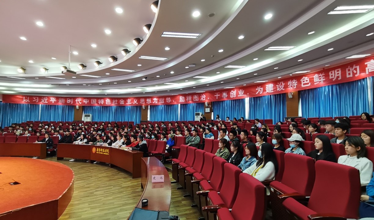 姜東菲以“學黨史,悟思想,作表率,做講政治、有修養、有擔當的學生干部”為題目給同學們上了培訓班的第一課。她從“新時代新階段,新要求新發展”、“學黨史,悟思想,永遠跟黨走”、“學黨史,作表率,做講政治、有修養、有擔當的學生干部”和“求真求實,求精求效,切實辦好本次培訓班”四個方面,引導同學們從中華民族偉大復興的戰略全局和世界百年未有之大變局中深刻認識新時代,教育同學們要學史明理、學史增信、學史崇德、學史力行,并對如何做一名新時代的優秀學生干部提出了明確的要求:愛黨,愛國,愛人民,聽黨話,跟黨走;有修養,講規矩,鍛造忠誠、干凈、擔當的優秀品質;有擔當,有作為,提升工作能力,履職盡責。最后,姜東菲勉勵全體學生干部強素質,做表率,做服務、講奉獻,用青春和奮斗繪就人生精彩畫卷!本次開班儀式歷時一個小時,在場學生干部全部認真聆聽,深受鼓舞。