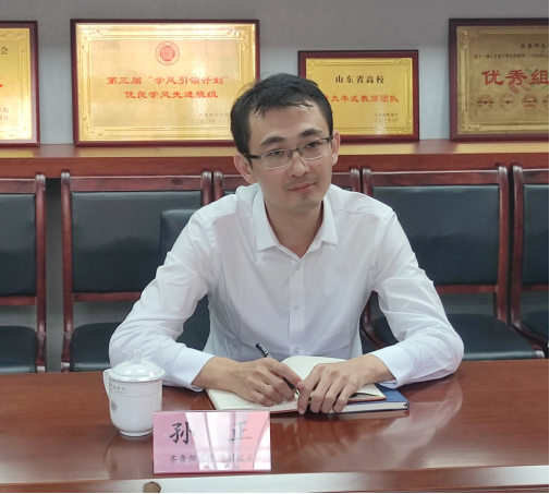 8月26日下午,水發建大建設集團有限公司常務副總經理王學峰、水發建大建設集團有限公司辦公室主任張鵬、水發萬豐生態農業發展(山東)有限公司副總經理路行震以及山東師范大學泰山產業領軍人才郭凱教授一行來訪我院,就雙方開展校企合作進行了深入交流。校黨委委員、副校長孫正,生命科學學院院長李師鵬、黨委書記姜東菲、副院長崔大勇等出席了會議,會議由李師鵬院長主持。