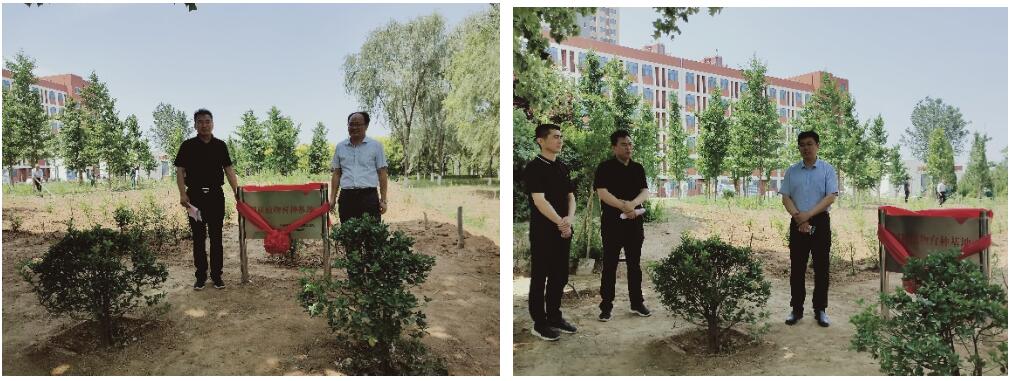 儀式現場,首先由園林專業負責人蔣蘇和教師代表張菲分別就園林專業學生實習實踐情況、育種基地現有植物資源做了簡要介紹。隨后,馬維軍處長與崔大勇院長一同為基地揭牌,并分別致辭。崔大勇首先對學校黨委、后勤管理處對園林植物育種基地建設的支持表示感謝,表示學院將充分利用好基地,促進人才培養與相關科學研究,使之成為園林植物品種培育、提高社會服務能力的載體和孵化器。馬維軍表示,園林植物育種基地揭牌儀式拉開了后勤管理處與生命科學學院共建合作的序幕,也是學習貫徹習近平新時代中國特色社會主義思想主題教育的最新成果;后勤管理處后續將與生科院優勢互補、資源共享、通力合作,在小土地上做出大文章。