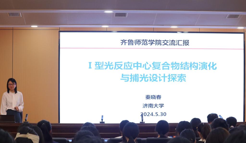5月30日上午,由科研處主辦,生命科學學院承辦的2024年度第38期“百脈論壇”講座在章丘校區第二學術報告廳舉行。濟南大學生物科學與技術學院院長秦曉春受邀為學校師生作題為《光合作用I型光反應中心復合物結構演化與捕光設計探索》的報告。報告由生命科學學院院長崔大勇主持,學校百余名師生現場聆聽。