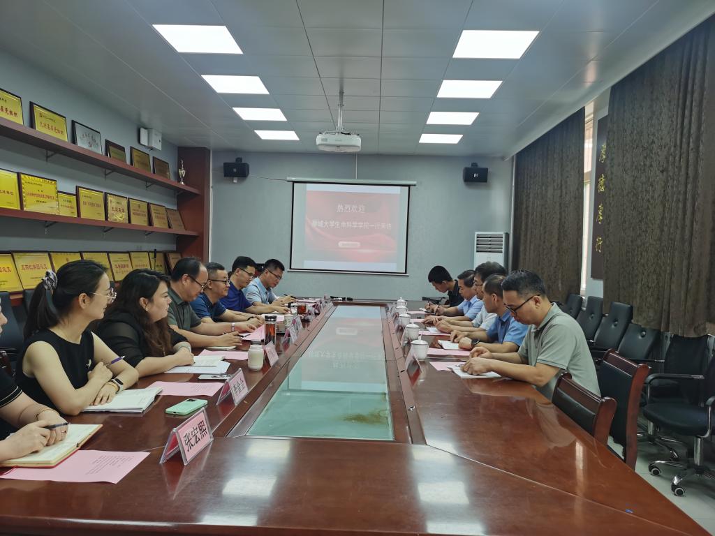 7月9日下午,聊城大學生命科學學院院長賈澤峰、黨委副書記李曉鵬、副院長徐偉、王春明、團委書記任慶超5人來訪,到生命科學學院訪問交流。學??蒲刑幪庨L孫洪兆、組織部副部長柴振光出席座談交流會,生命科學學院班子成員及行政辦公人員參加會議。會議由生命科學學院黨委書記張海龍主持。