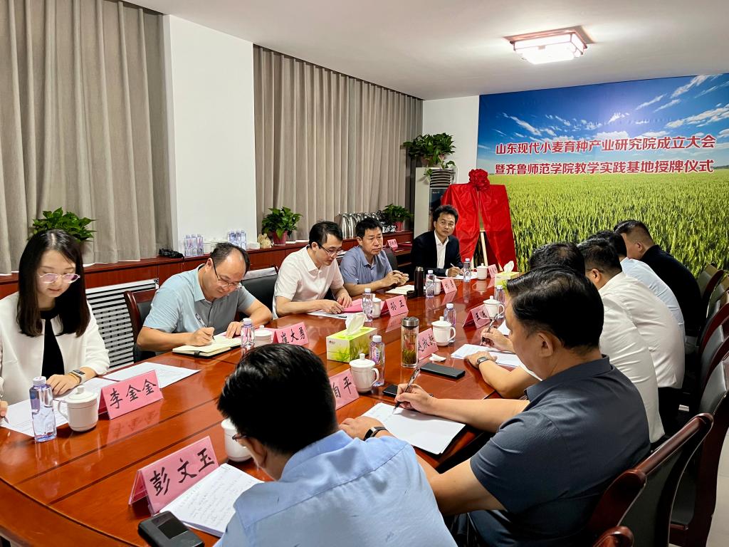 儀式結束后,與會人員進行了座談交流,并為研究院發展前景進行了深入探討。通過此次簽約暨揭牌儀式,齊魯師范學院與章豐種業的合作將為雙方提供更多機會,共同推動小麥育種領域關鍵技術的研發和成果轉化,提升全省乃至全國小麥種業的整體競爭力,助力創新驅動發展戰略和鄉村振興戰略的實施。
