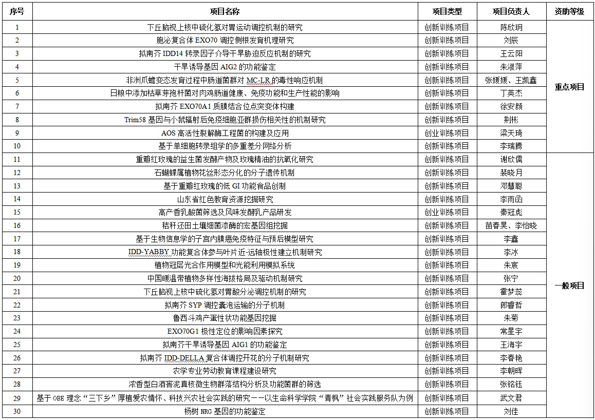 2024年生命科學學院大學生創新創業訓練計劃項目名單公示