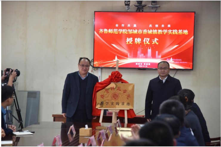 崔大勇將“齊魯師范學院教學實踐基地”牌匾授予香城鎮苗馬村黨支部書記、潤秋農業負責人馬強勝,該基地將為齊魯師范學院的學生提供豐富的實踐機會,同時也有利于將高校的科研成果在基層落地轉化,實現校地雙贏。