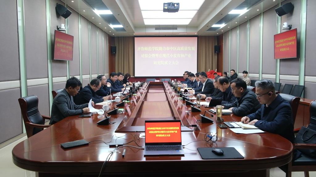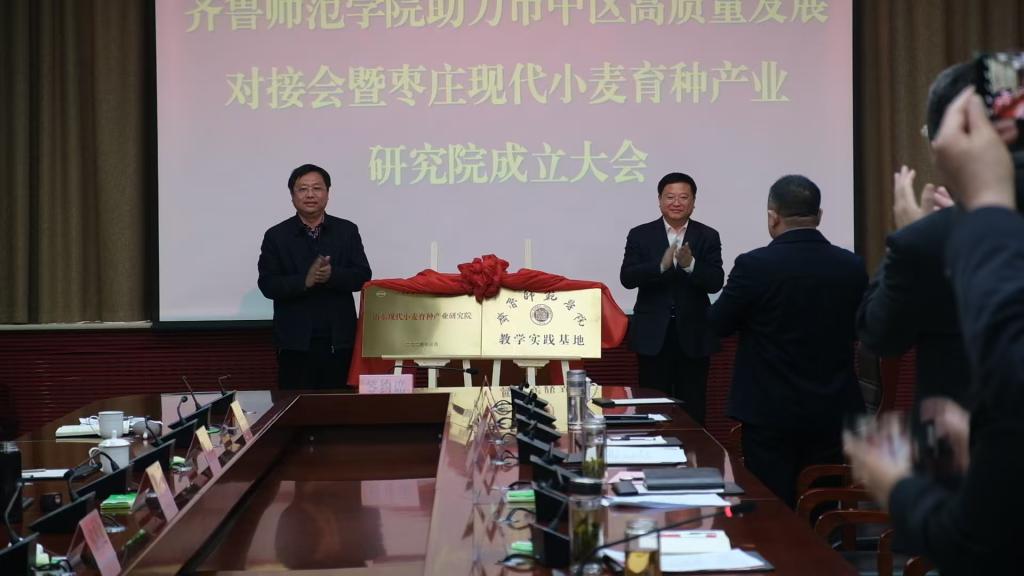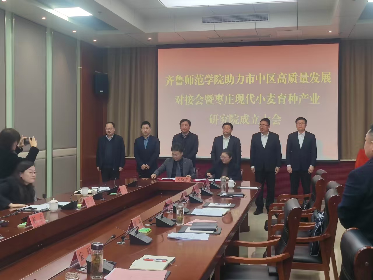 為積極拓展校地合作資源,助力縣域經(jīng)濟(jì)高質(zhì)量發(fā)展,3月7日,生命科學(xué)學(xué)院與棗莊市市中區(qū)舉行高質(zhì)量發(fā)展對(duì)接會(huì)暨棗莊現(xiàn)代小麥育種產(chǎn)業(yè)研究院成立大會(huì)。棗莊市市中區(qū)區(qū)委書記宋磊,區(qū)委常委、辦公室主任梁棟,區(qū)委常委、組織部長(zhǎng)王寧,副區(qū)長(zhǎng)馬維綱,齊魯師范學(xué)院黨委副書記、校長(zhǎng)鄭秀文,合作發(fā)展辦公室主任劉勇,生命科學(xué)學(xué)院院長(zhǎng)崔大勇、特聘教授朱俊科,棗莊登海德泰種業(yè)有限公司負(fù)責(zé)人,以及雙方相關(guān)代表參加會(huì)議。對(duì)接會(huì)由市中區(qū)區(qū)委副書記邢軍主持。