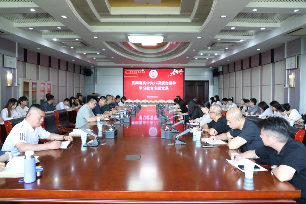 為扎實推進深入貫徹中央八項規定精神學習教育,2025年6月12日,學校黨委委員、副校長孫洪兆為師生黨員講授題為《鍥而不舍落實中央八項規定精神》的專題黨課。