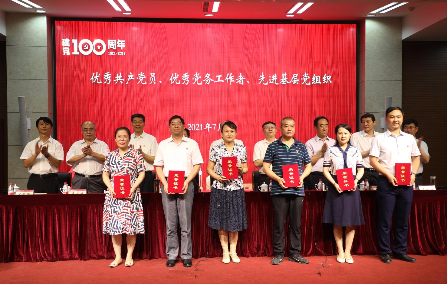 在歡快的樂曲聲中,與會領導為“光榮在黨50年”的老黨員同志頒發了紀念章,新發展黨員代表向他們敬獻鮮花。接著,與會領導分別為53名優秀共產黨員、15名優秀黨務工作者、19個先進基層黨組織,“脫貧攻堅”專項獎勵6個嘉獎人員、15個先進個人頒發了榮譽證書和獎牌。全場掌聲雷動,在場師生深受鼓舞。