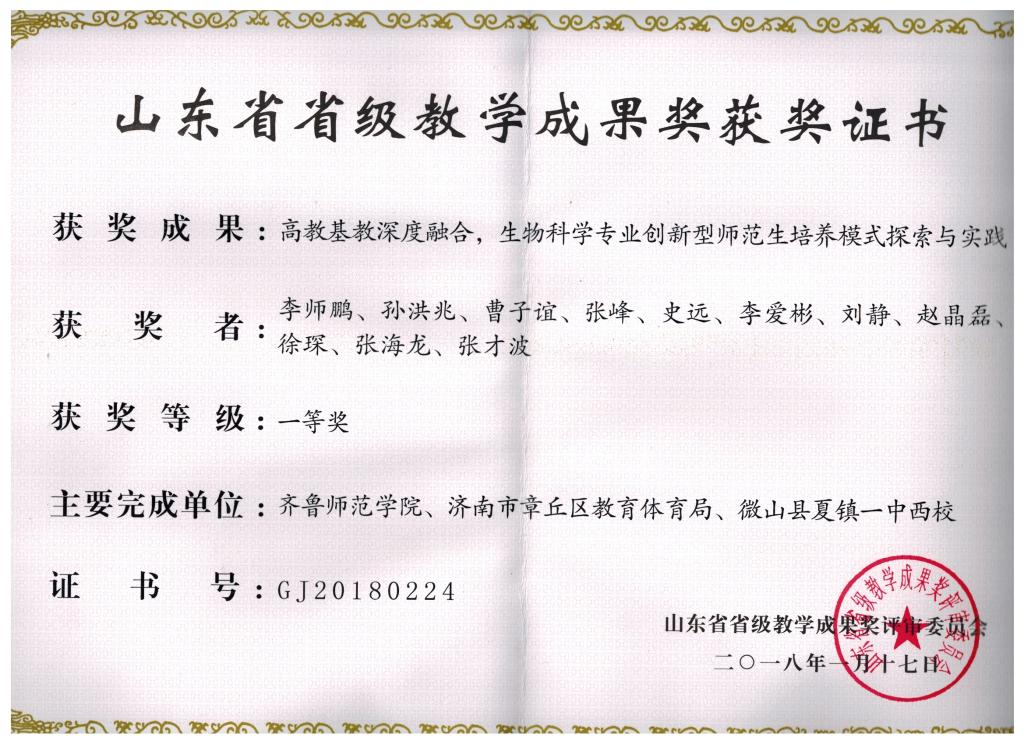 山東省省級(jí)教學(xué)成果獎(jiǎng)一等獎(jiǎng)