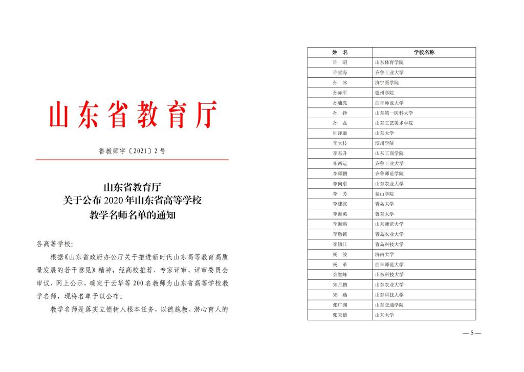 山東省高等學校教學名師