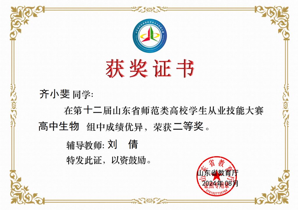 我院山東省師范類高校學生從業(yè)技能大賽獲獎情況
