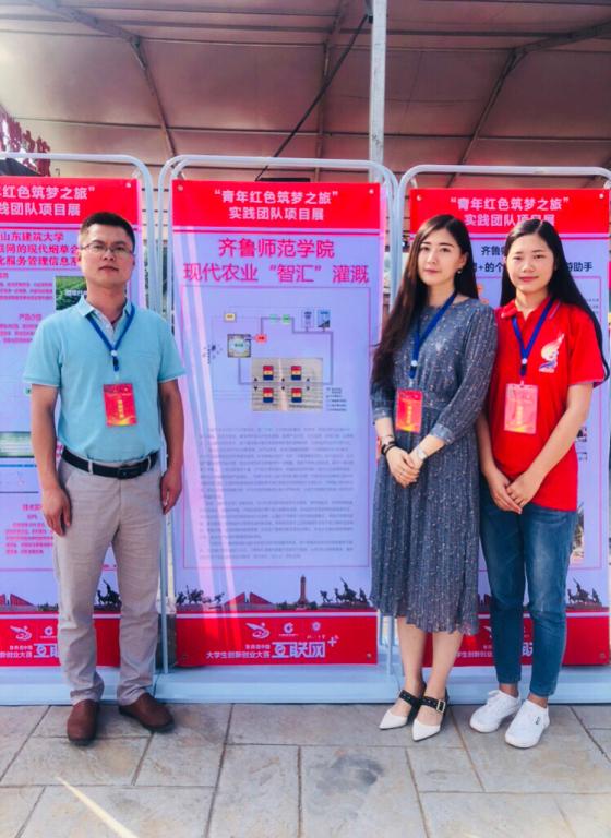 在創新創業方面,在指導老師的帶領下,團隊創新創業項目《綠色生態體系架構——現代農業“智匯”灌溉》在學?!盎ヂ摼W+”賽事中獲得金獎,同時,團隊積極參與2018年第四屆中國“互聯網+”大學生創新創業大賽“青年紅色筑夢之旅”全國對接活動,團隊成員就合作討論的《現代農業“智匯”灌溉》研究項目與全國高校參賽隊伍進行學習交流。在2018年山東省“三下鄉”社會實踐活動中,實踐團隊將農業灌溉項目思路帶入實踐地——臨沂市臨沭縣店頭鎮大垛莊村,并于駐村“第一書記”就項目落實方案進行深入討論,達成校地合作意向。