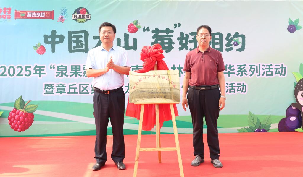 6 月 28 日上午,“泉果飄香” 首屆濟南特色林果嘉年華系列活動之第六屆章丘龍山樹莓文化旅游節在章丘區龍山莓園隆重舉行。黨委副書記、校長鄭秀文受邀出席開幕式,并與當地政府、企業共同推進山東省樹莓產業發展研究院簽約授牌等多項議程。山東農技協理事長、省科協原副主席、一級巡視員陳愛國,山東省經濟林協會會長趙之峰,濟南市科學技術協會黨組書記、副主席賈文濤,章丘區委常委、副區長許芳等出席活動。活動由章丘區龍山街道辦事處主任楊玉新主持。龍山街道黨工委書記于亮在活動致辭中對各位嘉賓的到來表示熱烈歡迎。山東省章丘龍翔樹莓生物科技有限公司(以下簡稱龍翔樹莓)總經理竇廣磊詳細介紹了樹莓產業相關情況,對樹莓的營養價值、產業發展成果及未來規劃進行了詳細闡述。隨后,陳愛國與賈文濤為龍山樹莓國家級科技小院揭牌,標志著樹莓產業在科技研發與人才培養方面將邁向新臺階。鄭秀文與趙之峰為山東省樹莓產業發展研究院揭牌,標志著校地企協同推進樹莓產業發展開啟嶄新篇章。鄭秀文感謝各位領導、專家、章丘區政府及企業對我院發展給予的支持和幫助。他指出,2024年4月,我院作為第一共建單位與龍翔樹莓共建的“山東章丘樹莓科技小院”獲批國家級科技小院,有效推動了科技與地方的深度融合。研究院的成立是校地企協同創新的又一重要舉措,也是各方資源優勢互補的必然選擇。我院將充分發揮自身在科研創新和人才培養方面的優勢,整合校內外優質資源,為研究院的建設與發展提供全方位支持,全力推動山東省樹莓產業向專業化、規模化邁進,助力鄉村振興和區域經濟高質量發展。