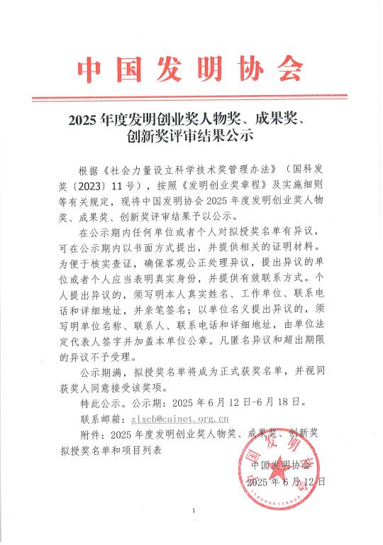 突破!我院首獲中國發明協會創業獎創新獎一等獎