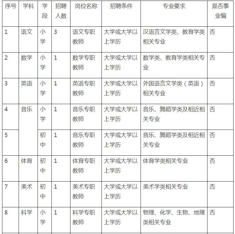 招聘計(jì)劃:23名(中小學(xué)教師18人,餐飲服務(wù)人員5人)。具體招聘崗位、招聘計(jì)劃及專業(yè)條件要求見附表。